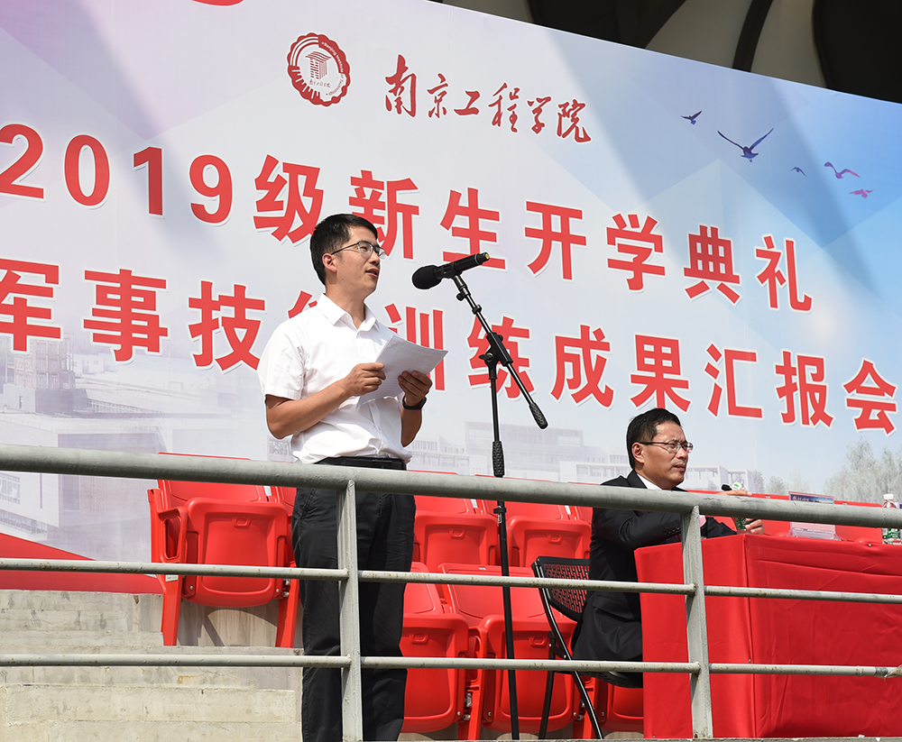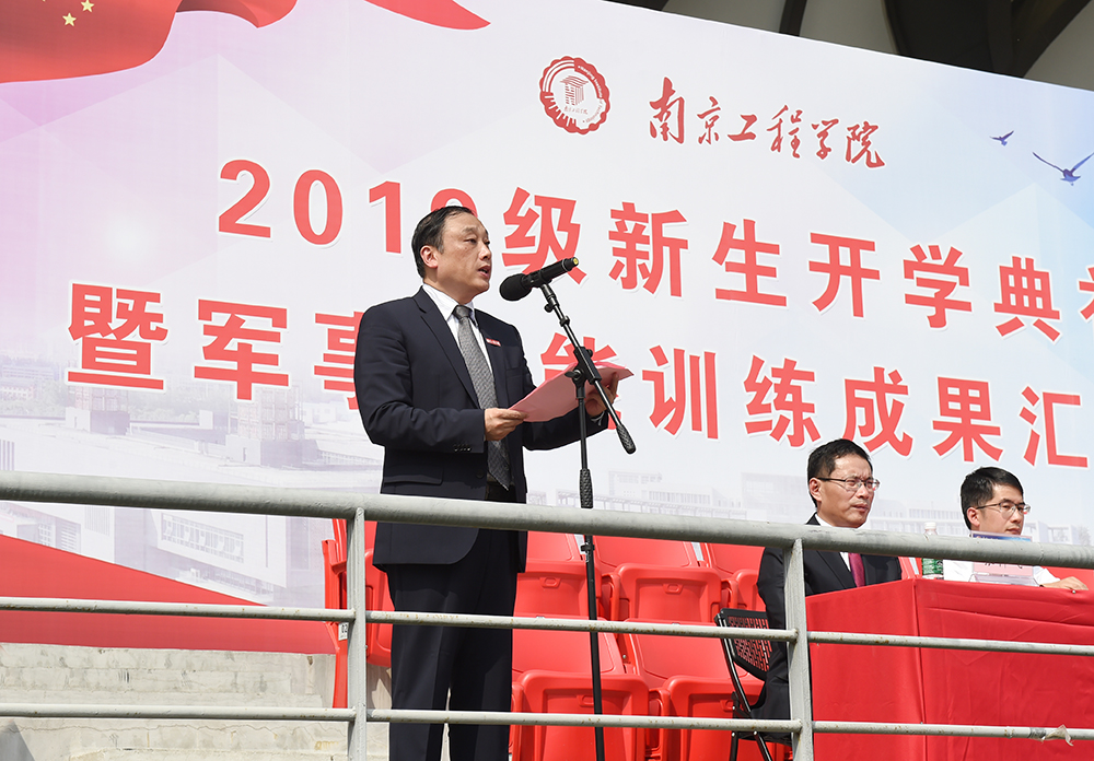 军事技能训练成果汇报会结束后,beat3652019级新生开学典礼正式开始。党委副书记、院长史金飞代表全校师生员工向6000余名本科生新同学和159名研究生新同学表示热烈的欢迎!向为此次新生军训付出辛勤努力的中国人民解放军陆军工程大学的领导和教官们表示衷心的感谢!他表示,同学们在beat365官方网站开始大学学习生活的日子,恰逢中华人民共和国七十华诞之际,这意味着大家未来的成长轨迹,将与“两个一百年”奋斗目标同向而行,注定要成为国家富强、民族复兴的中坚力量。他勉励同学要树立与时代主题同向同行的理想信念,把人生理想融入到实现中华民族伟大复兴的“中国梦”的奋斗中;要坚持终身学习,提高学习能力,践行不断学习、不断成长的初心使命;要坚持学以致用,知行统一,提高实践能力;要坚持创新精神,在不断的学习实践中激发创新创造的兴趣,增强创新创造的实力;要坚持修身养德,锻炼优良品质。从现在出发,德智体美劳全面发展,成为德才兼备、修心养性、知行合一、健康积极的新时代青年。他希望同学们把军训期间养成的良好精神状态和顽强的意志品质,延续到今后的大学学习与生活中,衷心祝愿大家在美丽的南工程开启筑梦追梦的新征程。