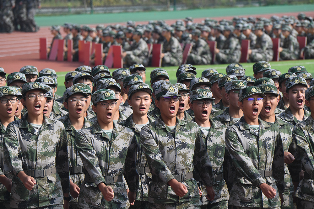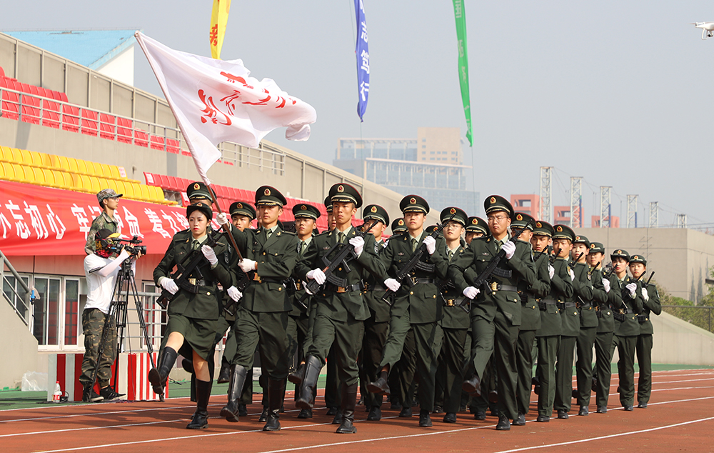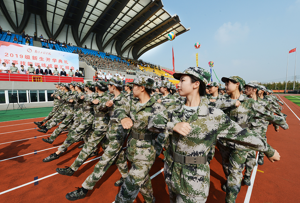 伴随着19发象征学校19年的辉煌历史的火箭弹腾空而起,军事技能训练成果汇报会正式拉开序幕。擎旗手、护旗兵和国旗班以热情饱满、斗志昂扬的精神风貌首先接受检阅,他们军姿威武、目光坚毅,步伐整齐。紧接着的分列式行进中,由2019级新生组成的16个受训方阵和1个用实际行动诠释爱国精神的退伍复学学生方阵踏着铿锵有力的步伐走过主席台,炯炯有神的目光,强健挺拔的身姿,响彻云霄的口号,无不彰显着南工程学子奋勇拼搏的精神风貌和青春风采。