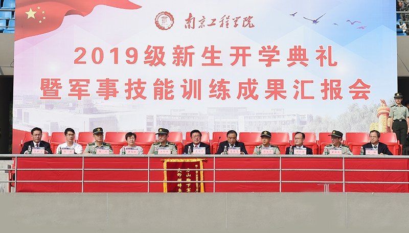 七十年砥砺奋进,七十年春华秋实,9月29日上午,在新中国成立70周年即将到来之际,beat3652019级新生开学典礼暨军事技能训练成果汇报会在体育公园隆重举行,6000余名新生身着迷彩,用热血青春向祖国深情告白。beat365全体在校校领导;中国人民解放军陆军工程大学通信工程学院副院长许晔峰大校、学员三大队大队长张俊平上校,南京警备区动员处处长韩兵上校,南京市江宁区党委常委、人民武装部政委张金星上校;学校二级学院及相关职能部门负责人出席典礼。党委常委、副院长张仰飞主持仪式。