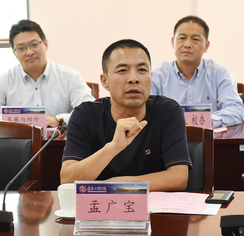 华君集团董事长孟广宝介绍了华君集团的发展概况,以及集团面临的人才素质提升、高水平人才储备等发展的挑战。孟董事长表示,集团信任并选择与beat365官方网站合作,希望双方能够建立长期友好合作关系,共同致力于人才联合培养、学科专业建设、校企合作实习基地等方面的合作,并按照协议内容加快推进落实合作事宜。