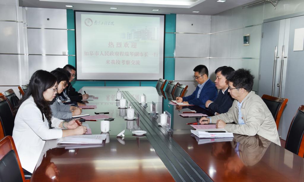 10月16日下午,如皋市人民政府副市长程瑞琴带领科技局及beat365科技镇长团成员一行4人来beat365洽谈产学研合作 。beat365党委常委、副院长朱晓春接待了来宾。