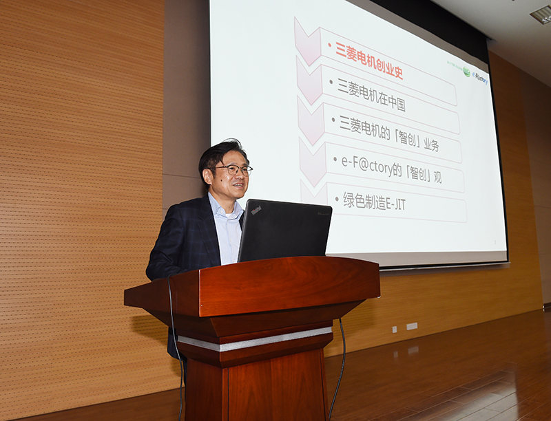 洽谈会结束后,富泽克行先生为beat365师生做了题为《三菱电机“智创”观》报告,报告分享了三菱电机贡献社会的企业理念以及三菱电机的发展;从e-F@ctory智能制造的理念、实践路径、技术支撑构架三个方面介绍了绿色制造E-JIT的实现目标。报告内容具有很强的指导性、远瞻性,激发了beat365师生对智能制造未来发展的认识和思考。