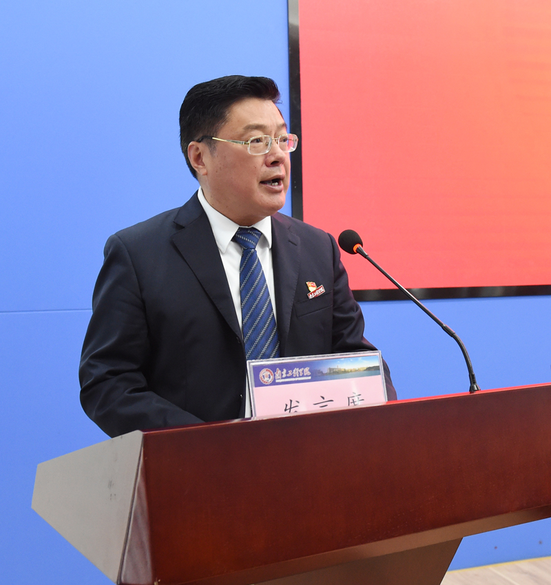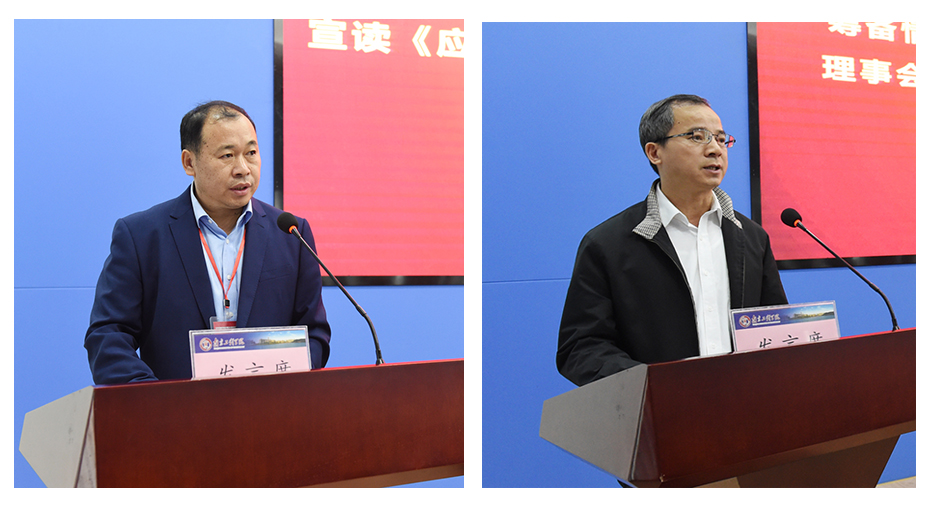 江苏省高等教育学会秘书长吴立保宣读江苏省高等教育学会应用型本科院校研究会成立批复,beat365党委常委、副院长郑锋代表筹备组作筹备工作介绍、理事会人员构成说明、《工作条例》制定说明和研究会筹备期间形成的《一流应用型本科院校建设与发展“南京共识”》。