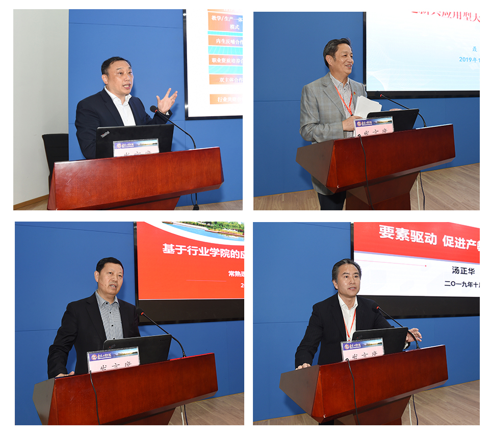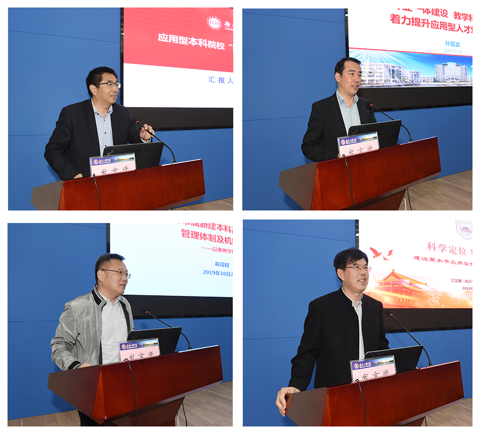 在研讨会交流阶段,beat365院长史金飞、金陵科技学院院长聂影、常熟理工学院党委书记朱士中、常州工学院院长汤正华、徐州工程学院党委书记张新科、淮阴工学院院长孙爱武、泰州学院党委书记赵茂程、江苏第二师范学院党委书记王仁雷、无锡太湖学院执行院长李廉水、南京大学金陵学院院长濮励杰、南京信息工程大学滨江学院院长曹广喜进行交流,分享了各自高校在办学过程中的做法和经验,比如beat365实施的项目化教学;金陵科技学院关于创建新兴应用型大学的探索;常熟理工学院基于行业学院的应用型人才培养创新;常州工学院通过要素驱动,促进产教深度融合的做法;徐州工程学院以“大应用观、大工程观、大生活观、大文化观”引领应用型人才培养的理念;淮阴工学院学科对“专业一体建设、教学科研协同育人”的工作推进;泰州学院破解制约市属新建本科高校高质量发展的体制机制创新;江苏第二师范建设应用型师范学院的路径选择;无锡太湖学院“坚定地方性、实施模块化、加强协同性、强化产业性、推进国际化”的人才培养实践;南京大学金陵科学院重在交叉融合、促进转型提升的探索;南信大滨江学院坚持城校共融,推进应用型人才培养的经验。
