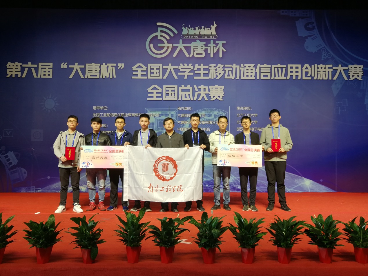 大赛分移动通信和大数据两个方向,经过以技术理论赛、工程实践赛和5G应用创新赛三个环节比拼,由潘子宇高级实验师指导的来自通信工程164的王默润、万晨权、张登盛、李楠获得移动通信本科组一等奖;由刘传清教授指导的来自通信工程171的王刚、通信工程163的端家鑫、单想、电子信息161的陈亚龙获得大数据本科组二等奖。