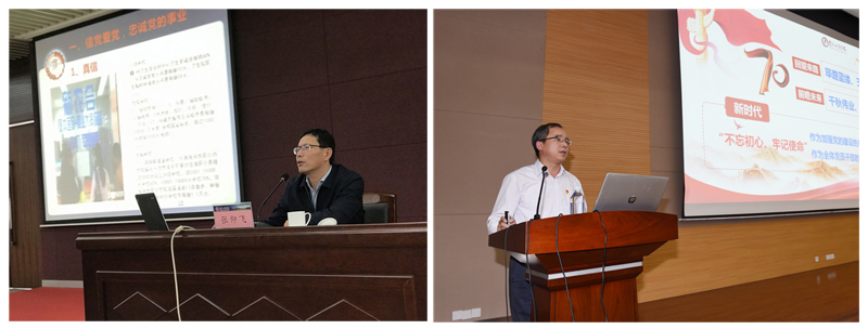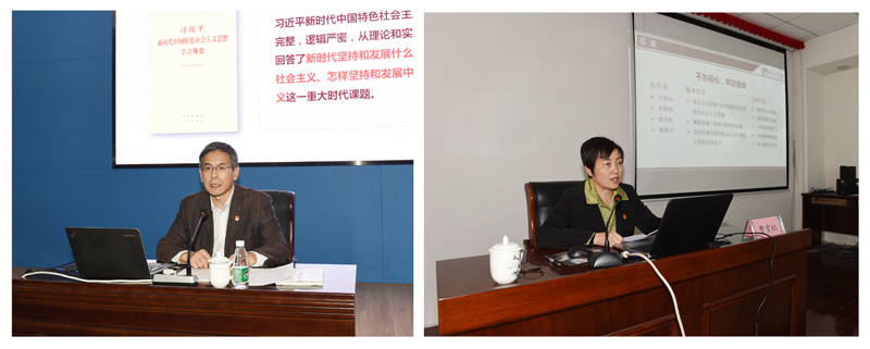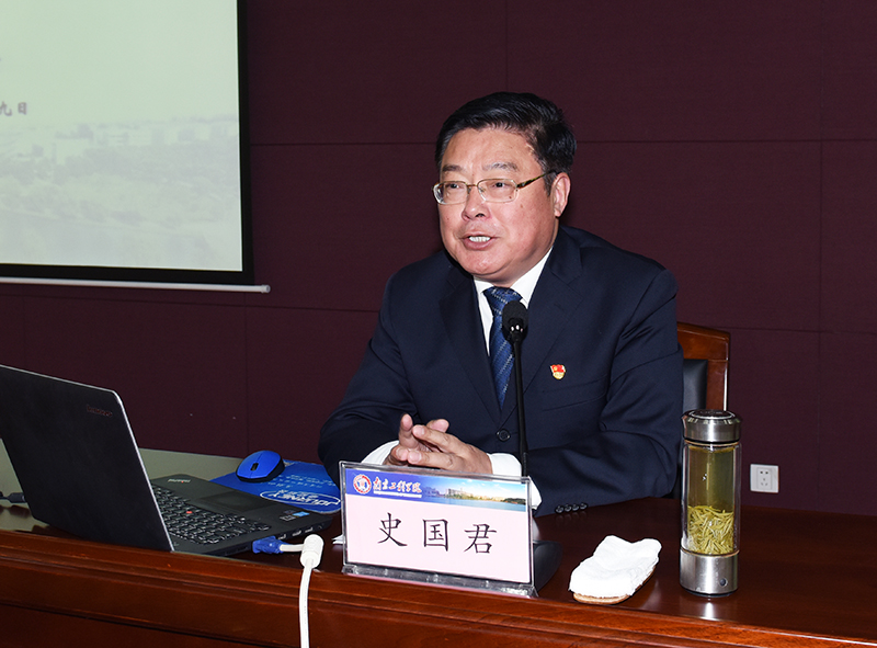 史国君书记专题党课题为《坚持党建工作引领,提升思政工作实效,落实“立德树人”使命担当》,他从“回顾党的光辉历程——在深化认识中悟初心知使命”“坚持立德树人根本——在身体力行中践行教育初心使命”“奋力走好新时代育人“长征路”——在革弊鼎新中传承初心担当使命”三个方面,带领干部党员共同回顾党的历史,深切感悟党的初心使命;结合高校立德树人的根本要求,深刻理解教育工作者如何践行初心使命,当好学生引路人;聚焦学校发展过程中存在的问题,找差距、抓落实,以实际行动确保主题教育取得实效。