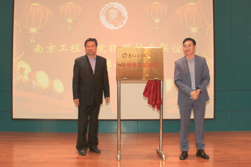 朱晓春副院长和新当选会长施传东共同为扬州校友联谊会揭牌。