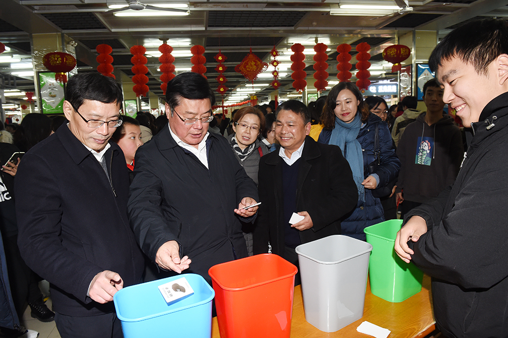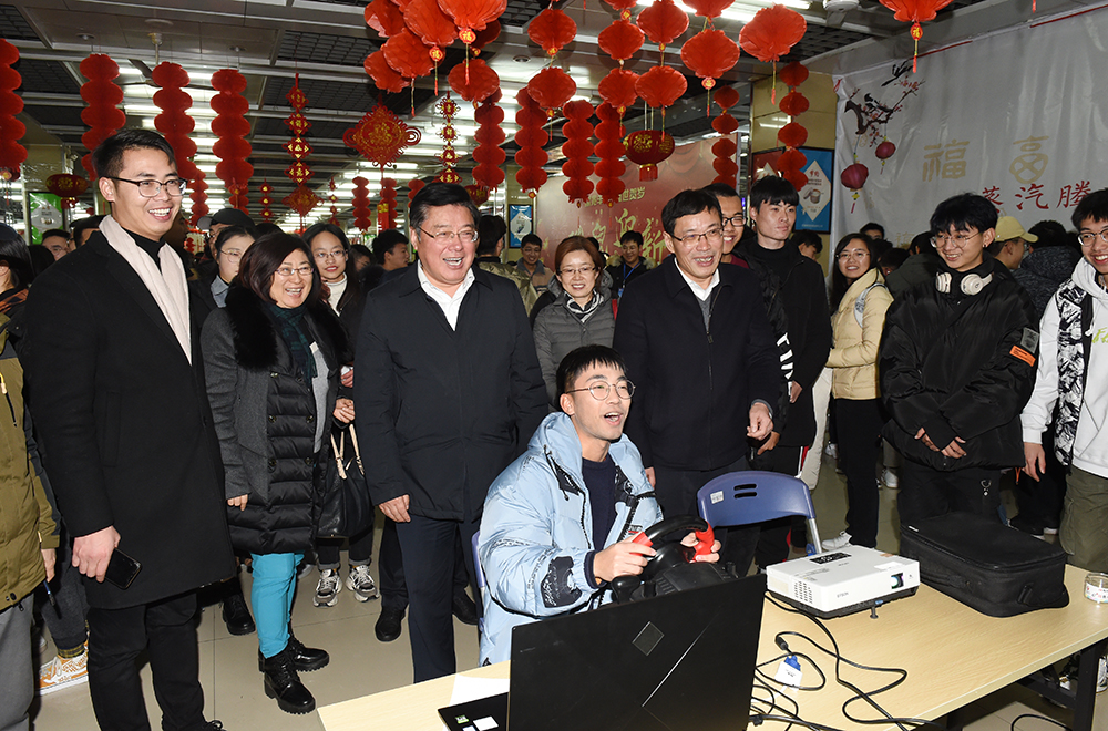 游园会活动形式多样,集趣味性、益智性和创意于一体,有休闲游戏“夹弹珠”“投壶”、新奇时尚的“VR游戏”、充满生活气息的“垃圾分类”、还有自由欢快的“正话反说”、“卡拉OK”、“欢快呼啦圈”等。在一派其乐融融的迎新年氛围中,史国君书记在每个展位前驻足,饶有兴趣地参与游戏;他还不时与大家亲切交流,为师生们送上美好的新年祝福,与大家共同分享跨年的喜悦。