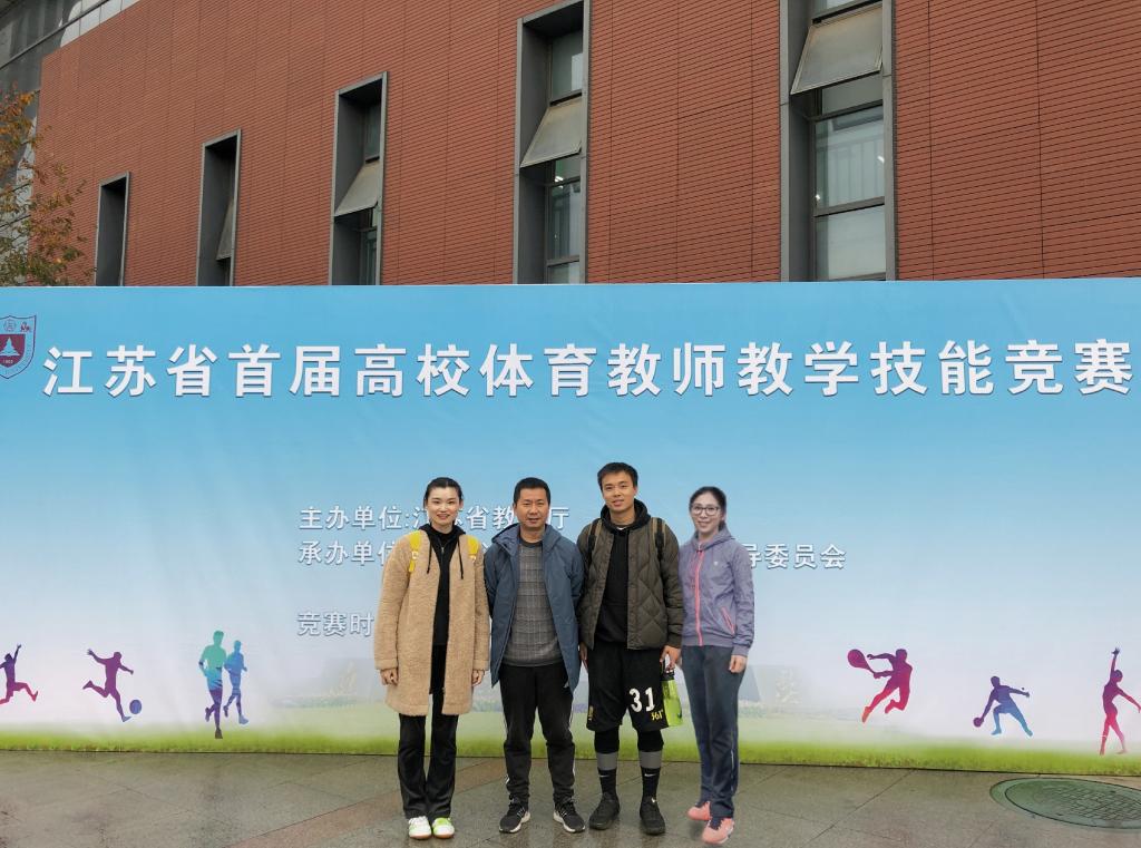 江苏省首届高校体育教师技能竞赛(本科组)于2019年11月21日至26日在南京大学举行。来自全省68所高校的307名选手参加竞赛,beat365体育部派出由马文杰副主任(左二)带队,多名优秀青年教师组成的团队参赛。经过教学技能(教案编写、说课)、运动技能(两项相关专业技能)两大环节激烈的比拼,李皓和蒋健宁老师力压对手,分别获篮球技能一等奖和网球技能三等奖。