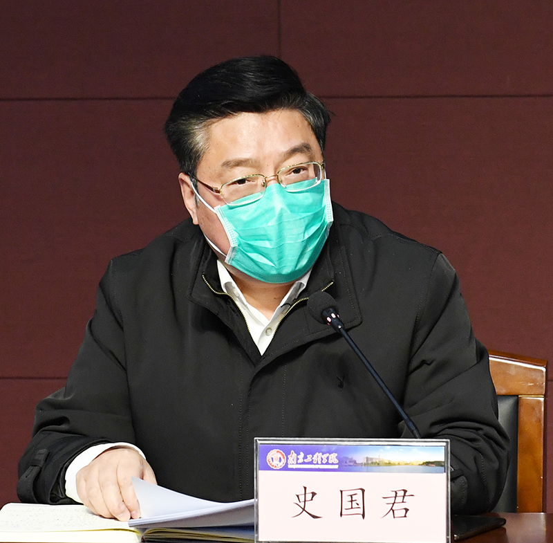史书记简单回顾了学校前期疫情防控工作在组织领导、疫情防控形势把控、疫情防控紧急预案、疫情防控知识科普教育、校园服务保障管理等方面的做法和成效。史书记指出,当前疫情防控形势十分严峻,不确定性因素依然很多。学校各部单位要从增强“四个意识”、坚定“四个自信”、做到“两个维护”的政治高度,不折不扣贯彻落实习近平总书记在中共中央政治局常务委员会上的重要讲话精神和省教育厅疫情防控工作视频会议精神。针对学校下一步疫情防控工作,史书记强调,第一,要求全校上下进一步统一思想、提高站位,高度重视疫情防控工作。我们要不忘初心,牢记使命,增强“疫情就是命令,防控就是责任”的紧迫感和使命感,全力以赴做好防控工作。第二,全校上下要把疫情防控作为当前最重要的政治任务落细落实。要激励引导广大党员、干部特别是领导干部在疫情防控斗争中挺身而出、英勇奋斗、扎实工作、经受考验,坚决做到党委有号召、党员有行动。加强联防联控,全力保障师生群众的身体健康生命安全,确保“零死角、零盲区、零疏漏”。第三,领导干部要强化责任担当,争当疫情防控践行者。做到守土有责,守土担责,守土尽责。同时要按照省委、省教育厅要求,坚持统筹推进防控工作与学校中心工作,确保学校各项工作平稳有序。第四,要弘扬新风正气,全面做好疫情工作的宣传报道。紧紧依靠师生坚决打赢疫情防控阻击战。第五,全校要保持政治定力和工作定力,细化落实学生返校各项准备工作,当好联防联控守护者,全力保障好师生健康安全。同时,要关心离退休老同志、困难职工的生活;处理好当前工作与全年工作关系,处理好开学前和开学后的关系等问题。