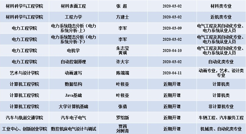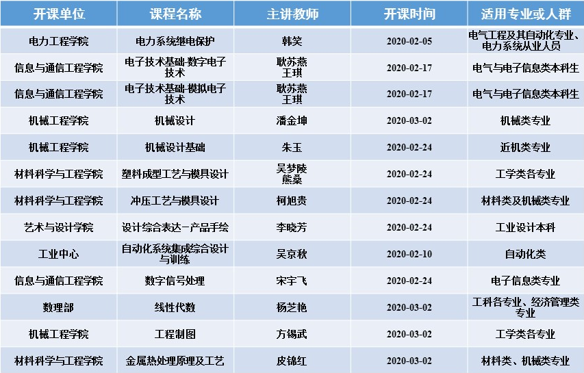 日前,beat365发挥百年传承、工科特长、行业特色优势,汇聚学校优质在线开放课程,通过“爱课程(中国大学MOOC)”平台,面向社会免费开放含国家及省级精品在线课程在内的25门课程(其中,省级及以上课程11门),发力在线教学,支持疫情防控期间“停课不停教、停课不停学”。具体开课情况如下: