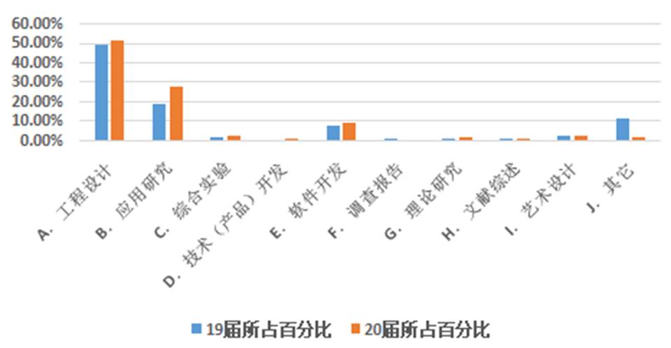 高度重视、全面部署,确保质量。为了将疫情的影响降到最低,教务处一方面按学校防控工作领导小组要求,全面部署、精心组织,下发《关于疫情防控期间充分有效利用在线文献服务做好毕业设计(论文)工作的通知》和《关于进一步加强2020届本科毕业设计(论文)工作的通知》,对本科毕业设计(论文)的各时间节点安排、毕业论文选题、教师网上指导等具体工作进行全面安排。另一方面通过教学管理QQ群,组织各教学单位教学分管领导启动了重新部署教学安排的专项研讨,明确毕业设计(论文)选题和工作内容调整策略,以及远程指导的工作要求。针对原计划在校外开展的毕业论文(设计)工作,全部调整为校内开展。对于需开展实验、实习、校外调研才能进行的选题,进行了选题变更,选题总量是需求量的110%。截止3月6日,beat365共6241名毕业生全部完成选题工作。对照2019届的选题情况,本届毕业设计(论文)的选题情况保持了很好的稳定性,其中工程设计类与应用研究类课题不减反增,符合学校毕业设计课题以工程设计、工程技术研究为主的要求。