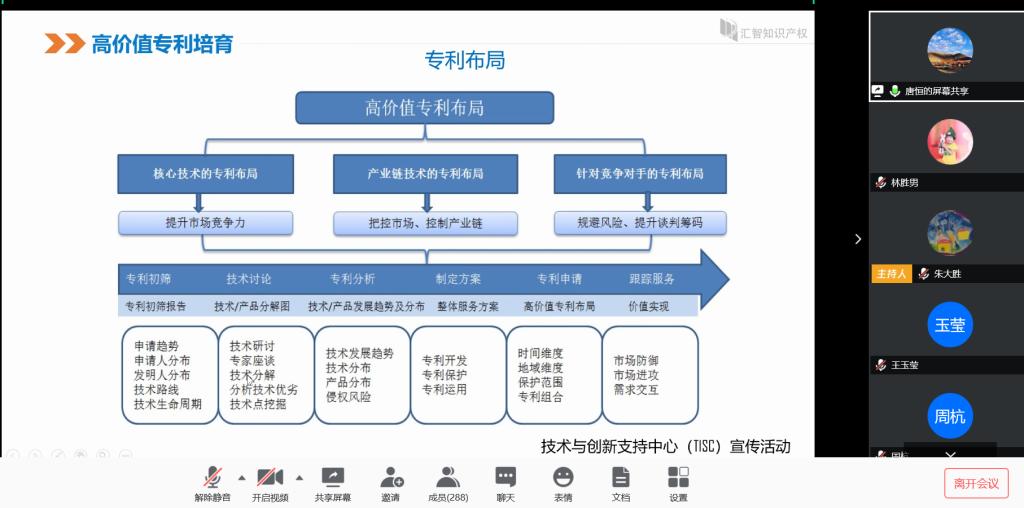 当天上午,beat365将一年一度的世界知识产权日系列活动搬到了线上。江苏省知识产权研究中心主任唐恒教授应邀为师生在线开讲题为“高价值专利培育和挖掘”的讲座,拉开了活动帷幕。唐恒教授针对近期师生比较关注的教育部、科技厅、国家知识产权局颁布的《关于提升高等学校专利质量,促进转化运用的若干意见》等文件精神、高价值专利培育和挖掘、各级政府专利奖的申报要点等问题做了系统详细的讲课,唐恒教授以真实案例为例,视角独特,语言幽默,易于理解,参会人员受益匪浅。讲座过程中,科技与产业处相关负责人介绍了beat365近年来知识产权工作情况及2020年重点工作。