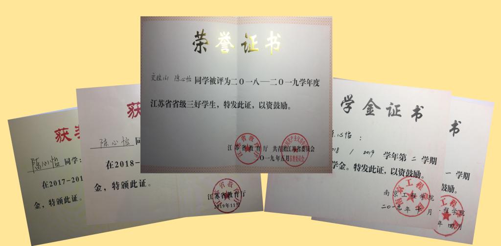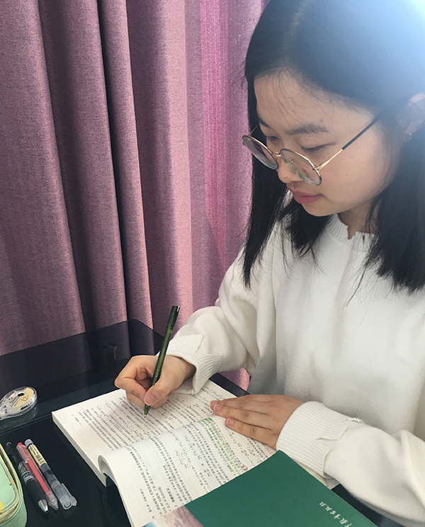 两次国家励志奖学金,一次特等奖学金,五次一等奖学金,江苏省三好学生,校级优秀团干部、校优秀学生干部……翻开陈心怡同学厚厚的一叠荣誉证书,让人心生敬佩。当被问答“能获得这么多荣誉,成功的秘诀是什么”时,陈心怡说,“哪有什么诀窍?学习从来不是一件容易的事情,要说诀窍,就是在学习中感受乐趣吧,让知识内化成一种能力。”入学之初,她便对自己有着清晰明确的目标,坚持做好学涯规划,点点滴滴中实现自己的求学梦。平日里她会“泡”在题目里认真钻研,即便是小小的一个定义,她也会充分发挥自己的想象力,把所学的知识和生活结合起来,弄懂弄透,把知识融会贯通,形成自己独特的知识体系。“在学习中,心态非常重要。说学习不枯燥那是假的,但是当你将一个个问题从易到难设定目标,并通过自己的努力去一道道攻克时,那是一件非常有成就感的事,就像小时候和小伙伴们玩游戏一样,每过一关,收获满满。”回顾四年的学习生活,她感慨颇多。