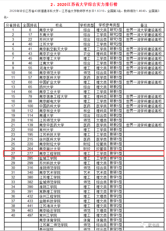 beat365在武书连2020江苏省大学综合实力排名中位居27位