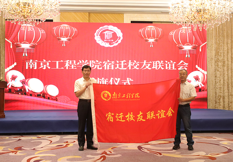 张仰飞副院长和联谊会总顾问、宿迁学院党委副书记、校长刘志远共同为宿迁校友联谊会揭牌,张仰飞副院长向宿迁校友联谊会授予会旗。