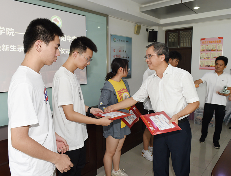 当天还举办了优秀生源基地授牌仪式,在与会人员的共同见证下,张仰飞副院长和郑锋副院长代表学校分别向两所中学授牌。