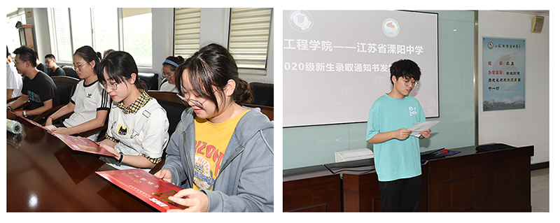 从校领导手中接过录取通知书,南工程新生们脸上写满了喜悦。江苏省溧阳中学的张瀚之代表即将进入南工程的萌新们发言,他说,从来没想过会以这种方式拿到成年以后的第一个offer,除了激动和高兴,更觉得感恩,感恩学校和老师在学习上给予他的悉心培养,感恩父母在生活上给予他的细心照顾,感恩新学校的领导们冒着酷暑送来这份喜悦。他表示,进入南工程以后,将秉承“学以致用”的校训,继续刻苦努力学习,不忘初心,坚守梦想,收获未来和希望。