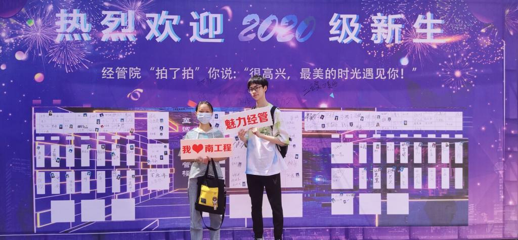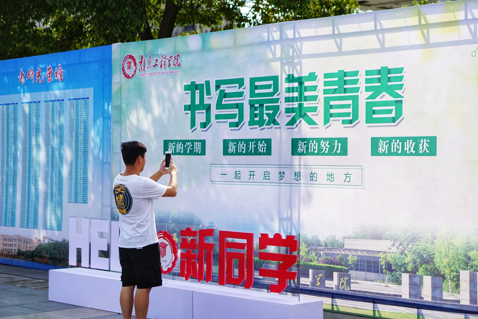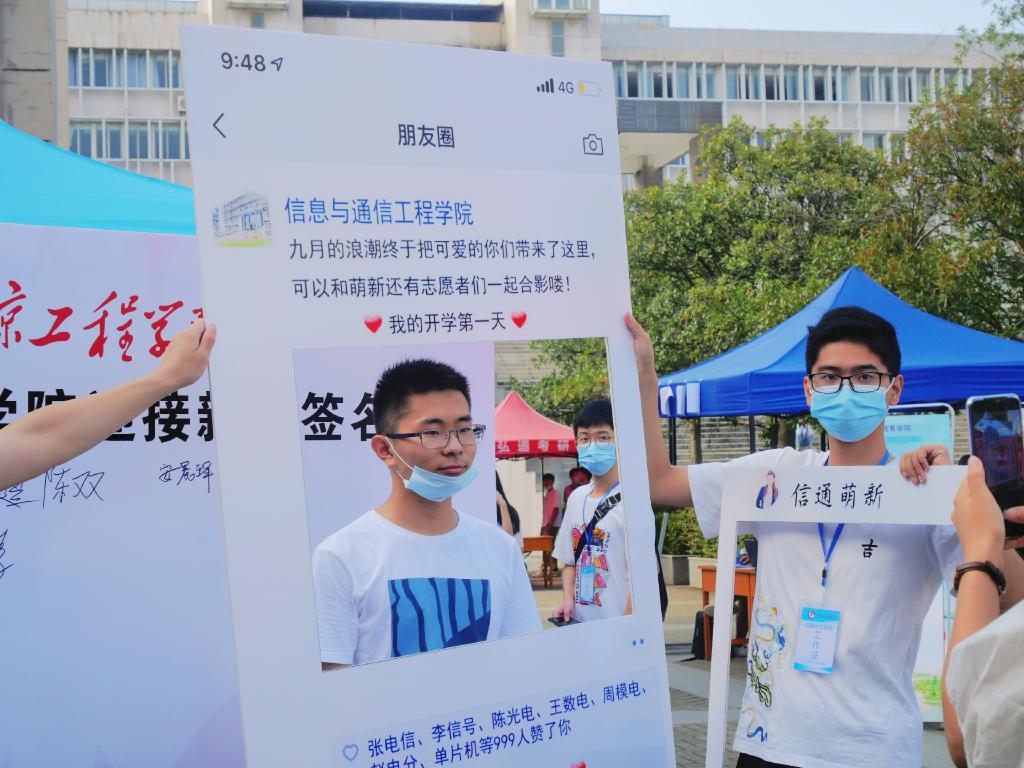 为了给新生留下美好的入校记忆,各学院的第二班主任、班主任,纷纷来到新生见面会、线上家长会现场和新生宿舍,为新生送上大学寄语。各学院不仅打出了让人过目不忘的迎新标语,还推出了别出心裁的迎新活动,比如,计算机工程学院在开学前就推出由该院计算机(嵌入式)172班周昫光同学拍摄制作的720°VR全景看校园,“希望带领学弟学妹从不同视角领略南工程的美。”光制作这部全景大片就花费了周旭光同学好几个月时间:“算是送给学弟学妹一个入学礼物吧!”电力工程学院派送的“新生礼包”不是实物,而是大学生生涯规划指导图,引导新生学好专业,做好个人规划,做优秀的大学生;经济与管理学院则在报到点立起了照片签名墙,墙上“很高兴,最美的时光遇见你”的字样寓意同心共济,“新”生欢喜,欢迎大家成为经管院的新主人;材料科学与工程学院则采取当下比较流行的“新生盲盒活动”,“盲盒”里有院领导签名的笔记本,有“学长学姐赠送的学霸笔记”,有“辅导员赠送奶茶一杯”,有“科创达人面对面指导一次”……抽中奖品的同学们也都非常兴奋,抽到科创模型的同学表示自己本就对模型十分感兴趣,此次的奖品他会好好珍藏。