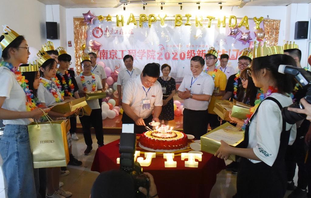 上午11点,“祝你生日快乐,祝你生日快乐……”欢快悠扬的生日歌在北区综合楼大学生就业多功能厅响起,温暖的烛光映照着18名今天过生日的新生的脸庞。这已经是beat365第五年在报到日为新生过集体生日,每年的这场生日趴都充满仪式感。今年学校全体校领导都来到了生日会的现场,这些幸运的孩子们不仅收获了生日礼物和蛋糕,还如愿收到书记校长亲笔签名的祝福卡,校领导们亲手为他们佩戴校徽,戴上祝福花环,祝福他们在生日这一天同时开启了在南工程学习生活的第一天。甜蜜的蛋糕在唇齿间化开,让孩子甜到了心里。独自坐动车前来报到的新生单仁杰也是幸福的小寿星一枚,他在现场激动地视频连线自己在南通的父母,分享“超级惊喜、超级感动”的现场画面,史国君书记、史金飞院长通过视频向她的父母问好,表达了对孩子的祝福,并表示:“我们已经接过教育孩子的接力棒了,来到beat365官方网站大家庭,请你们放心!”。视频那头,单仁杰妈妈不停地说着谢谢,场面十分温馨。通过直播看到生日会的不少家长在平台上留言:“现场布置太炫酷了,这是我看到的最温暖、最感人的集体生日会!”