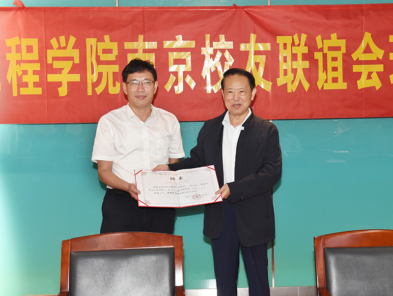成立大会上,史金飞院长与1987级校友、国电南京自动化股份有限公司总经理经海林共同为南京校友联谊会揭牌,并向新当选会长黄卫国授会旗。