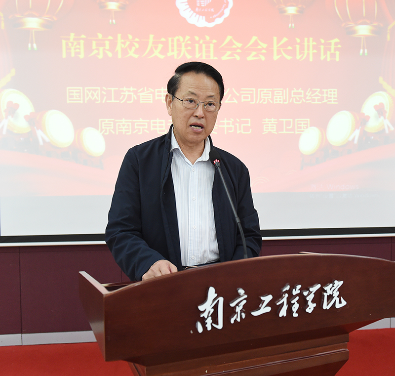 新当选会长黄卫国代表南京校友联谊会第一届理事会讲话。他饱含深情地说,“参天之树,必有其根,环山之水,必有其源。母校是我们成长的摇篮,是我们心灵的港湾。无论身在何处,我们的心都是与母校紧紧相连,我们的情结都与昔日师长同窗相牵”。他表示,校友联谊会的成立为我们搭建了共叙友情、重温师恩、协作交流的良好平台,南京校友联谊会理事会将切实发挥好桥梁与纽带作用,通过开展丰富多彩、形式多样的活动,吸引广大校友参与,并将在加强组织建设,健全运行机制,推动校友联谊会有序开展;强化合作交流,增进校企联合,促进母校与校友共同发展;畅通联系渠道,加强联谊沟通,开创校友联谊工作新局面等方面谋思路、出实招、求实效,为母校争得更多的荣誉,努力将校友联谊会建成校友的精神家园。