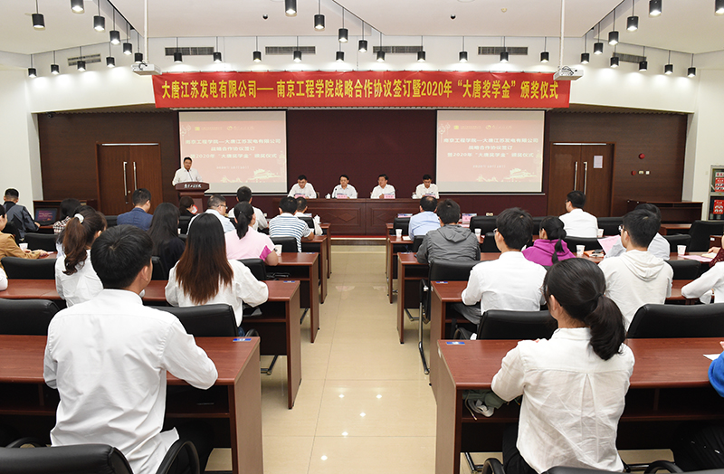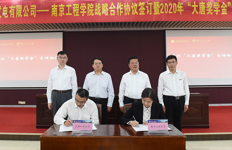 会上,在双方领导的见证下,beat365党委常委、副院长张仰飞和大唐江苏发电有限公司党委委员、规划发展中心副主任孙书耀签署了校企战略合作协议;学生工作处负责人与大唐江苏发电有限公司党群工作部负责人签署了“大唐奖学金”捐赠专项协议。