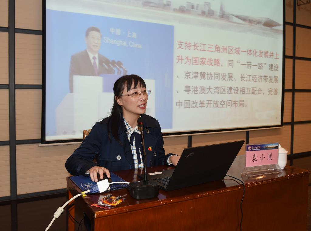 特邀专家、省委党校袁小慧副教授为共建党支部全体党员做了《长三角一体化发展与江苏新机遇》专题报告,为政校企三方协同发展、助推高校毕业生就业创业与经济社会高质量发展指引了方向。