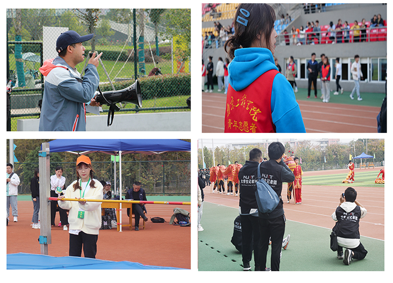 赛场上,除了运动健儿们,运动场上还有这么一群忙碌的人,裁判员用精密的仪表和细致的耐心记录着运动员的荣光;提供后勤保障服务的师生,用他们的爱心与专心为运动员们保驾护航;小记者用文字和镜头记录下每一个精彩瞬间;志愿者四处奔波,鲜艳的红马甲成为了运动场上一道亮丽的风景线……他们忙碌在操场上,穿梭在人群中,运动会的顺利举办离不开他们的辛勤付出与默默坚守。“很荣幸,能够为运动会的成功举办出一份力。今年运动会虽然从春季改到秋季,但依然没有阻挡运动健儿们的拼搏与努力,为所有参赛的老师同学们打call!”大学生记者团的刘家赫同学说。