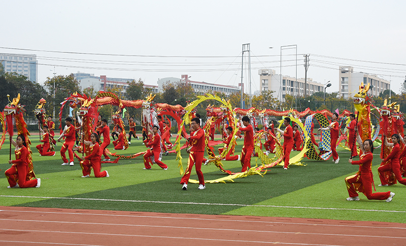 随着史书记宣布“beat365官方网站第十六届运动会开幕”,beat365师生自编自演的文体表演闪亮登场。在震撼人心的欢呼声中,舞龙队闪亮登场。灵动的身姿,欢快的步伐……舞龙表演一亮相就吸引了观众的眼球,四条巨龙,活灵活现,惟妙惟肖;大红的龙身,腾空翻滚,好生喜气。这一场《盛世龙韵》武动的是青春、是活力、是朝气,更是对伟大祖国的尊敬与热爱。伴着青春唯美的旋律,百名啦啦操体育选项班的姑娘们翩翩起舞,一曲《青春飞扬》展现了南工程学子青春活泼的力量,展现了南工程蓬勃发展的氛围。