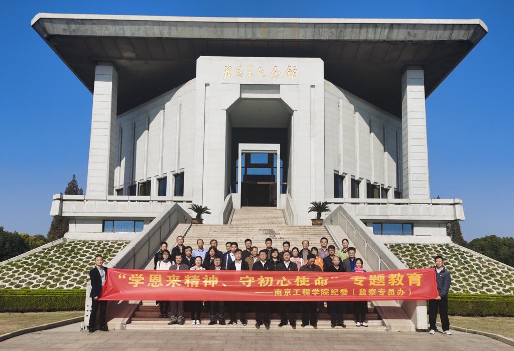 根据省纪委开展“学恩来精神、守初心使命”专题教育活动要求,11月6日,校纪委书记赵立法带领校纪委委员、二级基层党组织纪检委员、校纪委机关全体人员、机关党委第九支部全体党员在周恩来总理家乡淮安开展现场学习,集体瞻仰周恩来纪念馆,接受周恩来精神熏陶教育。