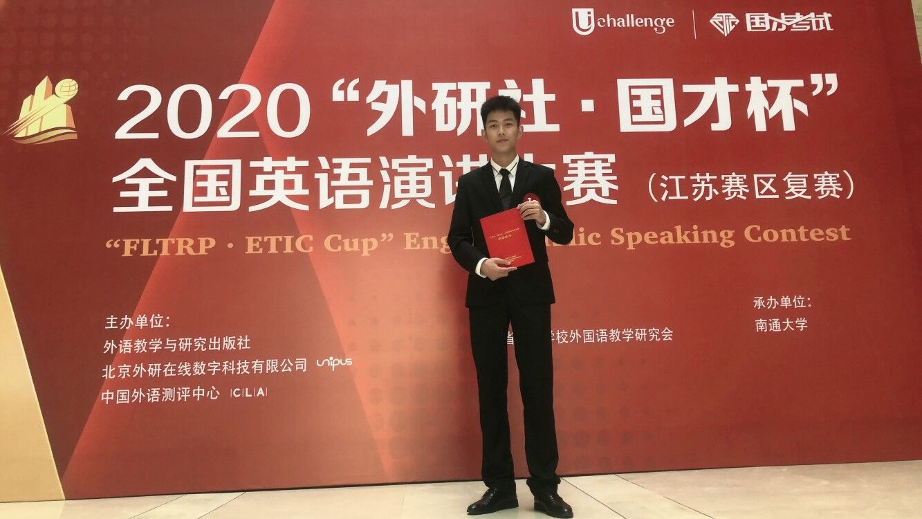 英语181班杨力丞荣获演讲大赛江苏赛区二等奖