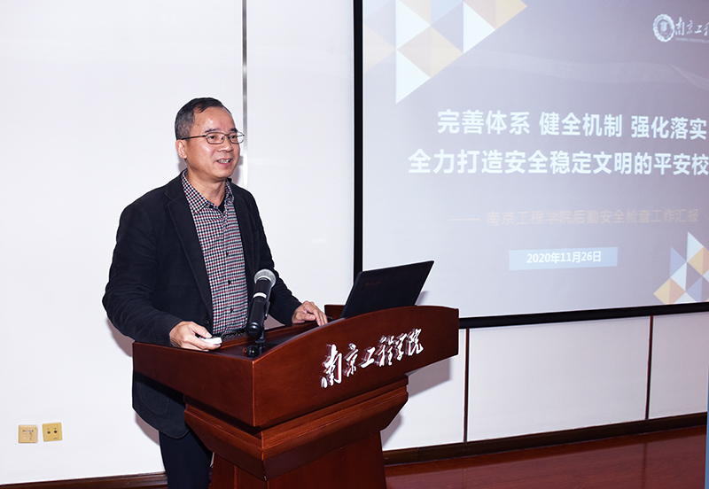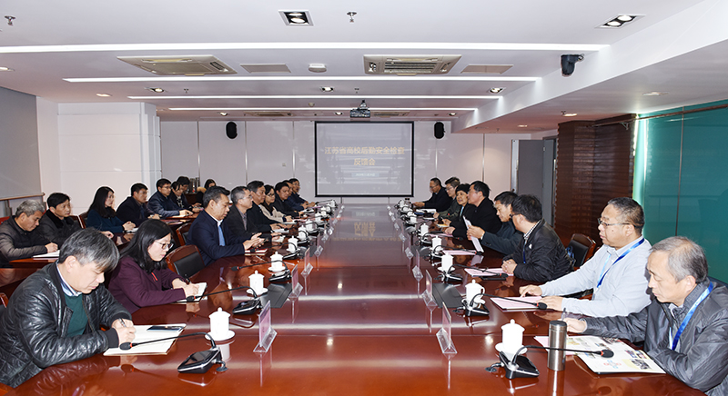 11月26日,江苏省高校后勤安全工作检查组莅临beat365,通过听取汇报、现场走访、查阅资料等形式对beat365后勤安全管理工作情况进行了全面检查、评估和指导。党委书记史国君,党委常委、副院长郑锋,相关职能部门负责人参加了工作汇报会和意见反馈会。