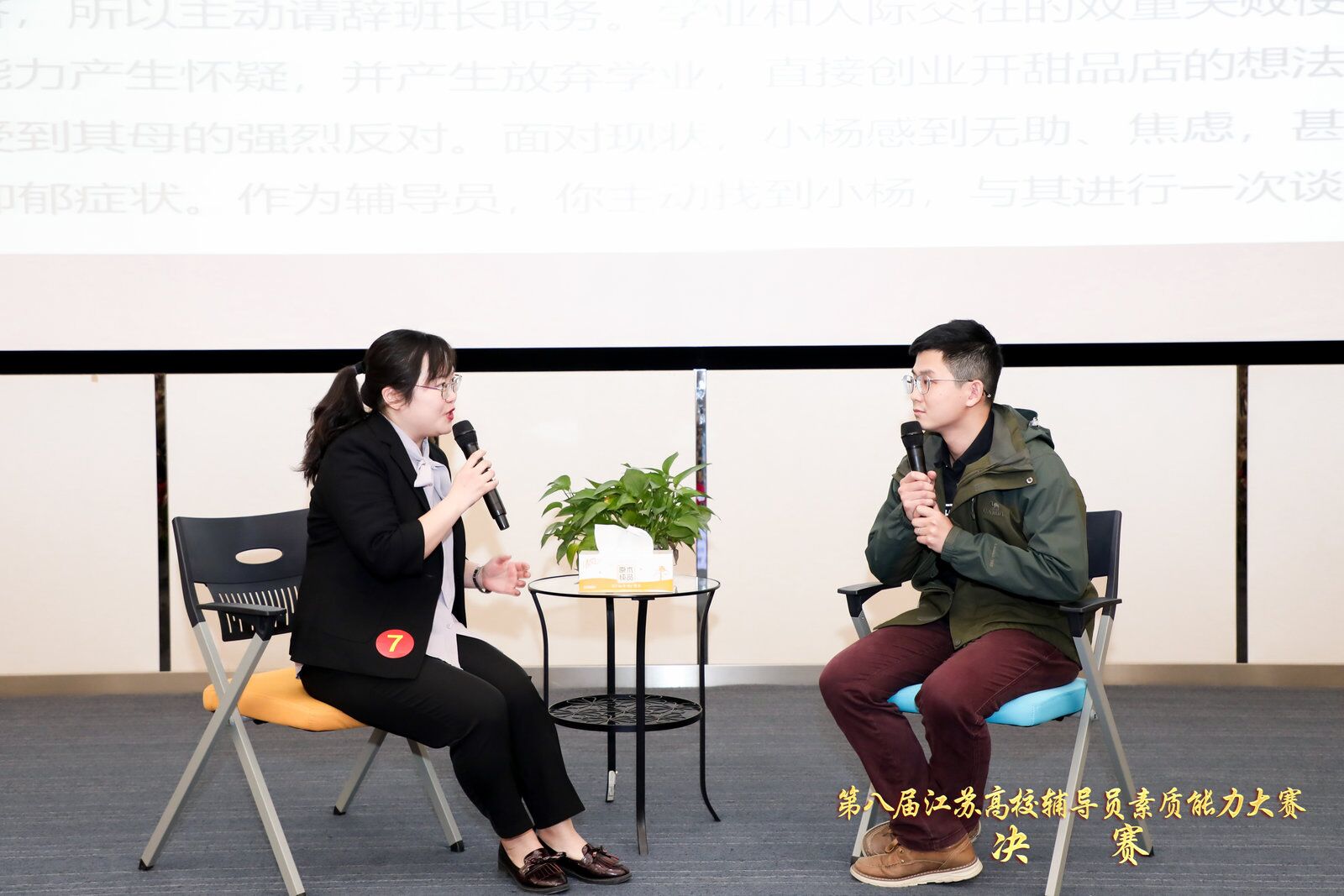 此次决赛在前期复赛的基础上,根据即将举办的第八届全国高校辅导员素质能力大赛的通知精神,对赛制进行了新的调整,分为基础知识测试、案例分析和谈心谈话三个环节,更具灵活性和挑战性,对辅导员夯实工作基础,结合理论知识研判、分析、解决实际问题的能力提出了更高的要求。在案例分析环节,孙薇薇凭借对问题本质的精准分析、解决思路的全面把握、实施办法的精辟阐述,得到评委老师和同仁的一致好评;在谈心谈话环节,孙薇薇围绕助演学生面临的学业和生活困境,按照解决思想问题和解决实际问题相结合的原则,做好心理疏导和人文关怀,在总结和提问环节对谈话案例进行进一步的剖析和补充,赢得了评委的肯定。“通过与优秀同行们同场竞技,对标找差,更深刻地感悟到辅导员工作的能力要求和神圣使命。”得知获奖名次后,孙薇薇表示今后还要继续努力,继续做好大学生的人生导师和健康成长的知心朋友。