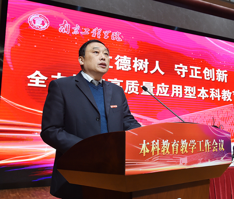 党委书记史国君作大会总结讲话。史书记从大会很好地回答了“三问”入手,对大会取得的成果给予了充分肯定,史书记指出,大会“问历史”,全面总结与固化了南工程应用型本科教育教学探索成果;“问当下”,充分研究了南工程本科教育教学面临的问题与机遇;“问未来”,精心部署规划了“十四五”本科教育教学工作的目标、思路和举措。大会期间,教育教学单位认真讨论、集思广益,提出了真知灼见;大会上表彰的先进典型和年轻老师们充满激情的发言都让人感受到南工程的力量和希望。结合学校面临的形势和工作实际,史书记对如何做好今后五年的教育教学工作提出了三点意见和要求。一要提高政治站位,坚持以习近平新时代中国特色社会主义思想为统领,加强党对学校工作的全面领导,高度重视应用型本科人才培养对国家、社会和学校的重要意义,持续改进思想政治工作。二要坚持立德树人根本,将社会主义核心价值观融入人才培养全过程,构建多元协同的“大思政”育人体系,抓牢抓实高素质、专业化教师队伍这一提高人才培养质量关键。三要不断更新思想观念,建立大局意识、主体意识、团队意识、改革意识“四个意识”,转变教育观念、落实工作责任、强化服务合力、完善体制机制,全面提升服务教育教学工作的保障能力。