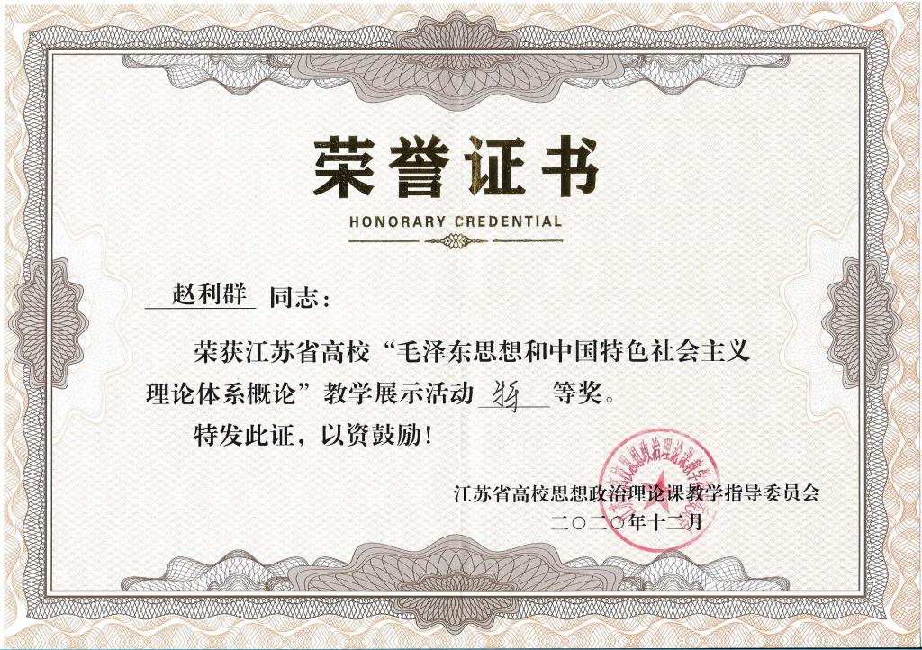 12月12日,江苏省首届高校“毛泽东思想和中国特色社会主义理论体系概论”课教学展示评比活动在苏州大学举行,beat365马克思主义学院青年教师赵利群获得特等奖。