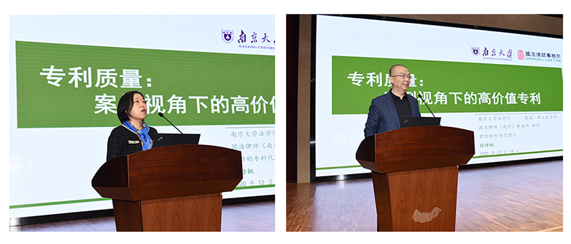 会议期间,南京大学法学院徐棣枫教授、朱煜处长两位专家分别作题为《专利质量:案例视角下的高价值专利》及《新发展格局下知识产权工作的机遇与挑战》的报告,同与会人员分享了专利质量、知识产权工作形势分析等方面的精彩内容。