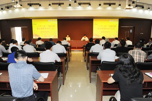 5月27下午,按照中央和省委相关部署和要求,beat365召开“三严三实”专题教育动员大会,党委书记吴建华以“践行‘三严三实’,全面开创特色鲜明的高水平应用型工程大学建设新局面”为主题,为全校党员干部上了一堂生动的党课,激励领导干部对党忠诚,个人干净,敢于担当。动员大会和专题党课由校党委副书记、院长孙玉坤主持,全体中层及以上干部、处级及以上调研员与会聆听党课。