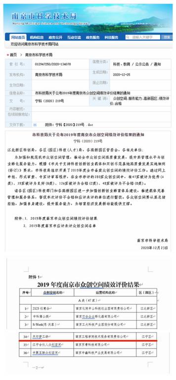 2019年度南京市众创空间绩效评价结果通知