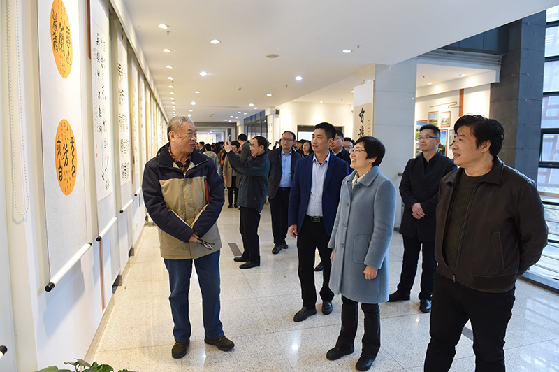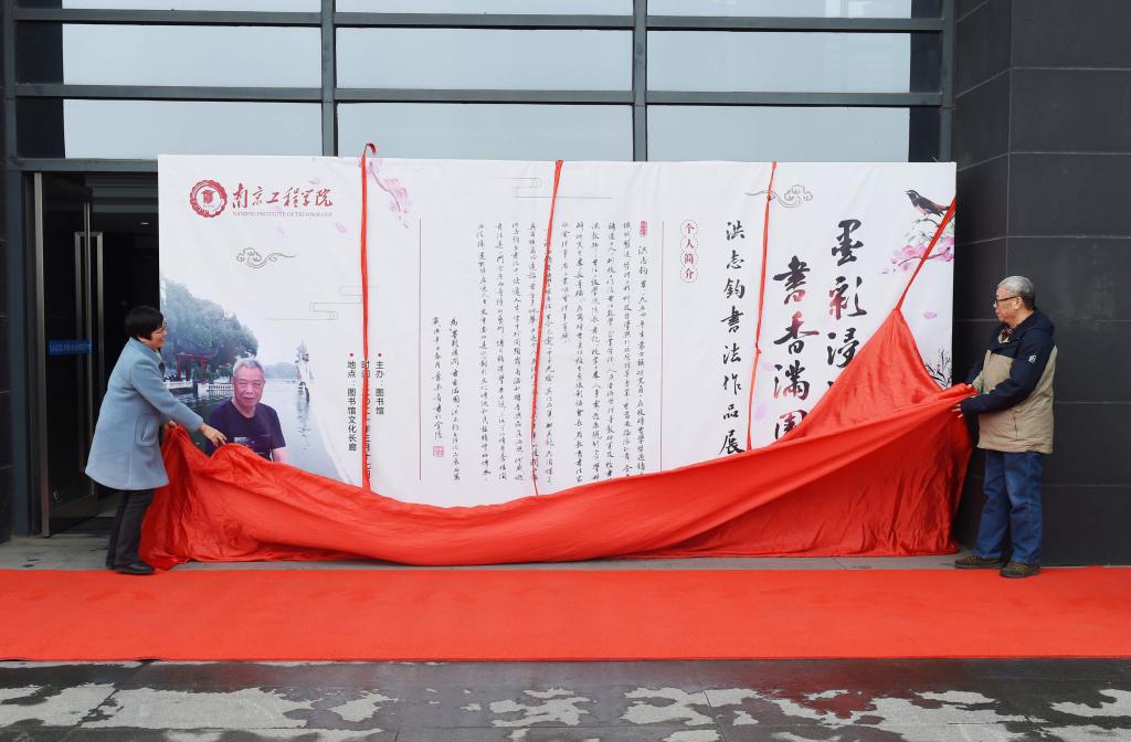 3月17日下午,“墨彩浸润,书香满园”——洪志钧书法作品展在beat365文博苑·逸夫图书信息中心文化长廊开幕。校党委副书记、副院长曹雪虹参加开幕式、为书法展揭幕并致辞。