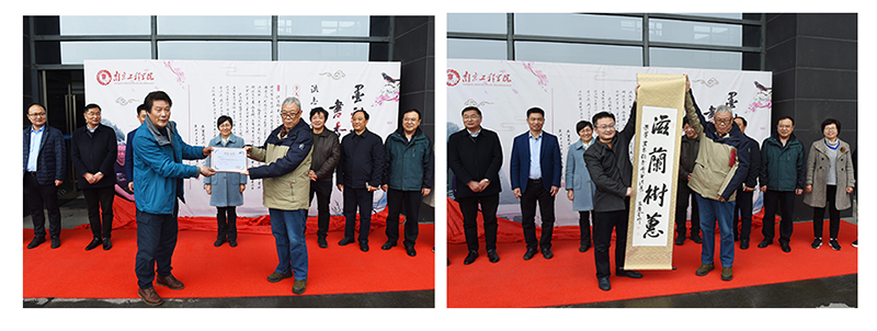 开幕仪式上,图书馆白少布馆长为洪志钧老师颁发展览纪念证书;beat365书画摄影协会会长叶长青老师代表水利部水工金属结构质量检验测试中心专家、中国书法家协会会员孟庆奎,向洪老师赠送书法作品一幅。