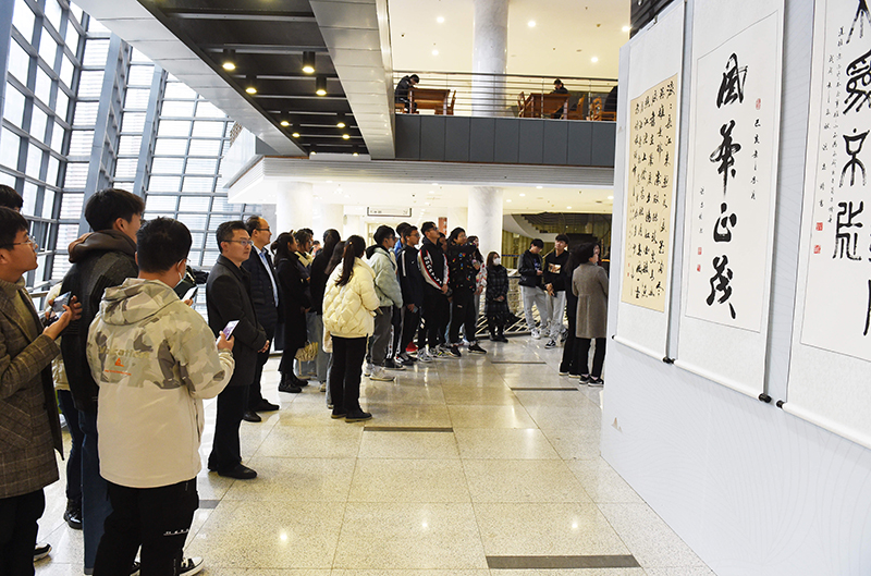 党委宣传部、校团委、学生工作处、图书馆、校书画摄影协会、各学院(中心)等部门负责人以及受邀师生代表参加了开幕式并观展。此次书法作品展为期一个月,欢迎广大师生前往观摩、学习。