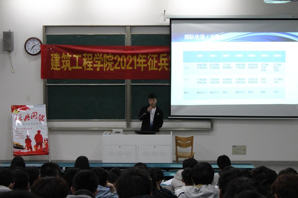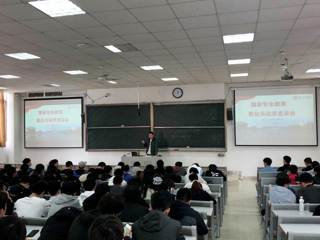 国家安全教育日到来之际,恰逢秋季征兵工作宣传启动之时,学工处、各二级学院(中心)结合征兵宣传,将国家安全、人人有责的教育融入到日常国防教育中,落实到为部队挑选优秀兵员中。4月14日下午,材料科学与工程学院王东鑫老师在东201教室,通过从大学生参军入伍优待、发展途径、定向发展等方面细致讲解了大学生参军的政策,鼓励大家将爱国之心化为报国之行,为国防安全事业贡献力量;4月14日晚,建筑工程学院退役复学学生代表冯景羿同学与王福全同学在文理B202教室,分别结合自身经历,分享了在部队服役的基本情况以及参军入伍的收获和感悟,倡导同学身体力行,切实履行好维护国家安全和社会稳定的职责;4月15日下午,学工处黄照衡老师在东202教室开展国家安全专题教育讲座,他结合自己的亲身经历,为同学们讲述丰富多彩的军旅生活。他强调入伍经历对于成长成才的重要意义,希望在座同学增强国家安全意识,自觉维护国家安全,做有理想、有担当的有为青年,以实际行动报效国家。