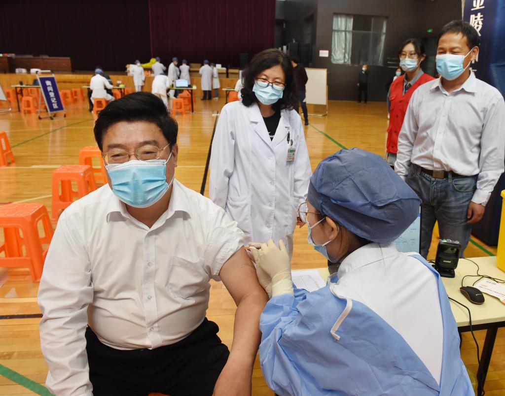 根据南京市新冠疫苗接种工作整体部署,4月28日,beat365新冠病毒疫苗接种工作有序启动。当天上午,党委书记史国君等校领导第一时间来到学校集中接种点,带头完成首剂新冠病毒疫苗接种,并看望、鼓励在场师生,关心、慰问一线工作人员和学生志愿者。