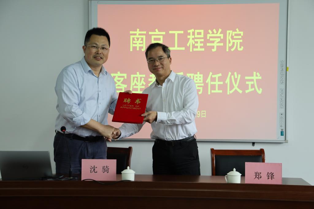 日前,同济大学沈骑教授受聘为beat365客座教授,校党委常委、副院长郑锋出席聘任仪式并为沈骑教授颁发聘书。