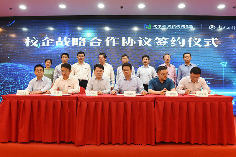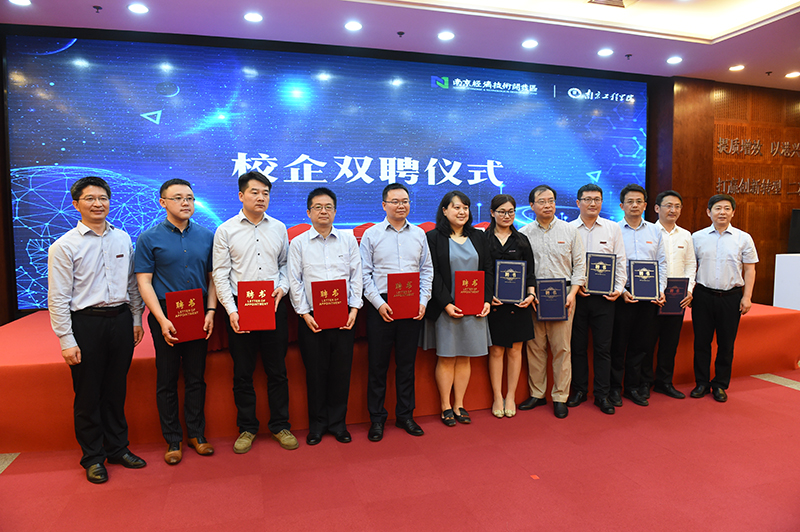 在与会人员的见证下,南京经开区党工委书记黎辉与beat365党委书记史国君共同为“beat365官方网站技术转移中心南京经济技术开发区分中心”“beat365官方网站大学生就业创业基地”揭牌;张仰飞副院长与刘洪文副主任签署校地战略合作协议;beat365官方网站党委常委、组织部长朱松青代表学校向白云电气集团华东总部总经理沈其荣、南京泰普森自动化设备有限公司总经理熊传辉、南京浦和数据有限公司总经理李越、南京华格电汽塑业有限公司总经理包建宁、南京合信自动化有限公司技术总监汤井伦颁发了客座教授聘用证书。上述公司在会上还聘用来自beat365的五位专家作为企业技术顾问,并签订了校企产学研合作协议。