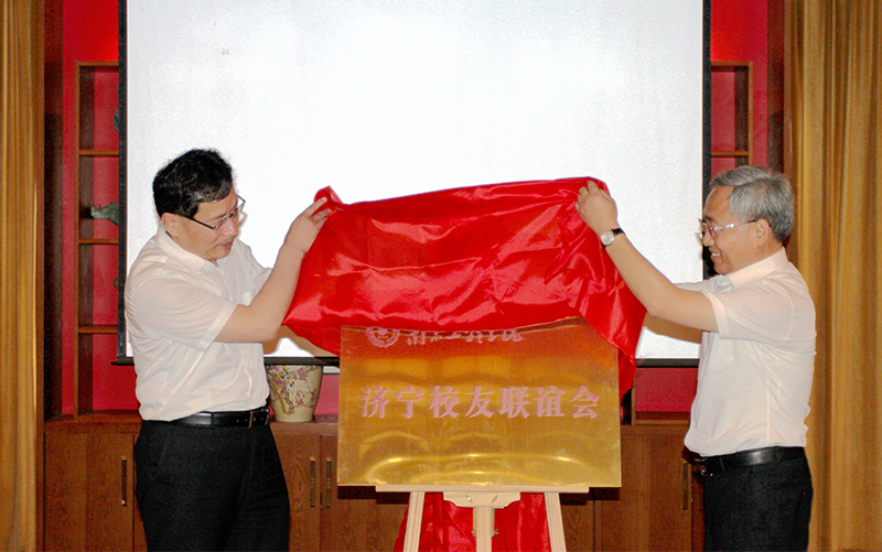 在热烈的掌声中,张仰飞副院长为济宁校友联谊会顾问、名誉会长、理事会成员发放聘书;与济宁校友联谊会顾问田海臣校友共同为济宁校友联谊会揭牌;并向新当选济宁校友联谊会会长孙宪军校友授旗。