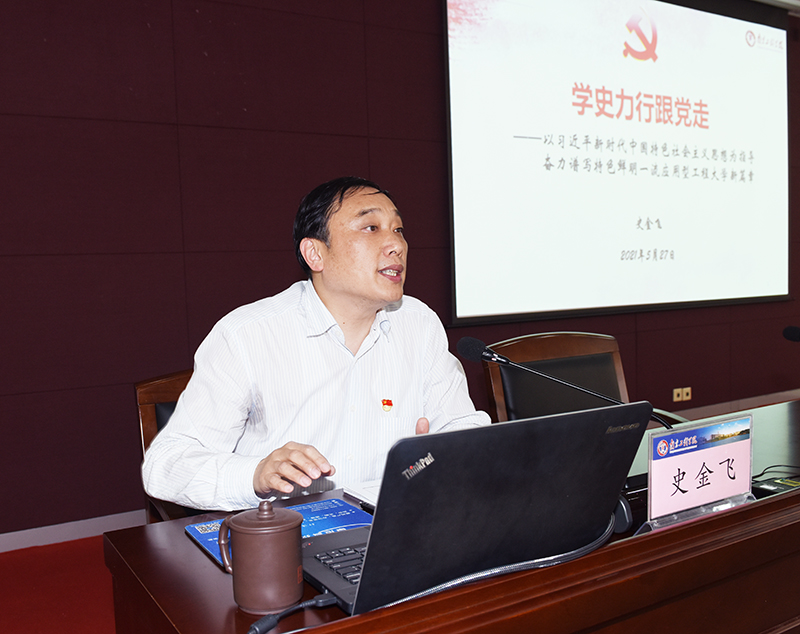 “以史为鉴,可以知兴替”,史金飞院长希望广大师生通过进一步学习“新民主主义革命在全国的胜利、中国特色社会主义的开创与发展、中国特色社会主义进入新时代”等内容,回顾和重温党的百年辉煌,学史明理、学史增信、学史崇德、学史力行,以习近平新时代中国特色社会主义思想为指导,奋力谱写特色鲜明的一流应用型工程大学新篇章。
