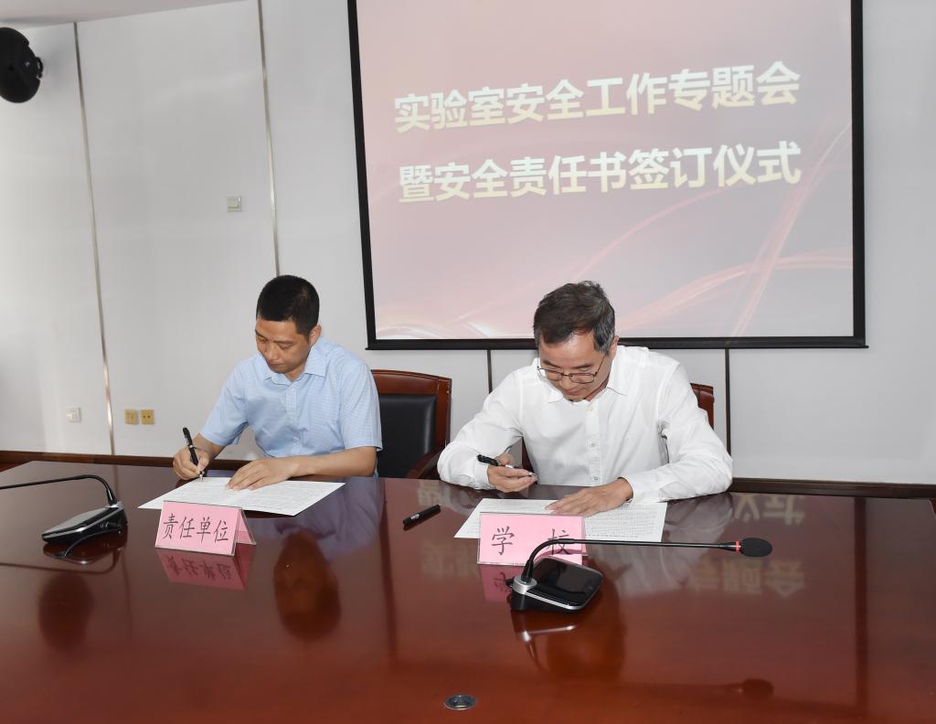 郑锋副院长代表学校现场与各教育教学单位党政负责人签订实验室安全责任书,以进一步落实实验室安全管理责任制,强化实验室安全责任意识,建立健全安全管理长效机制。