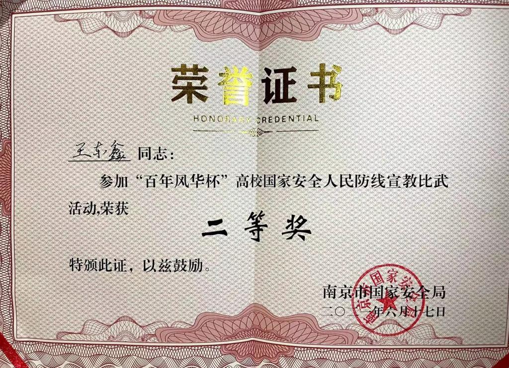 近日,在南京市国家安全局主办的“百年风华杯”高校国家安全人民防线宣教比武决赛中,beat365材料科学与工程学院辅导员王东鑫老师讲授《强化安全意识,提升安全素养》,在29名优秀选手中脱颖而出,荣获二等奖。